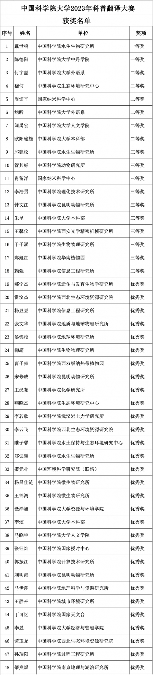 本次大赛收到来自校部和各培养单位总计239份作品,经专家评审,评选出一等奖2名、二等奖6名、三等奖10名、优秀奖30名。获奖者请留意邮箱后续通知。